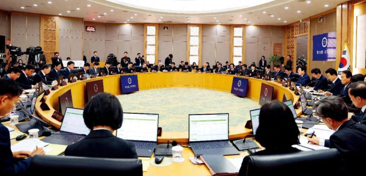 3月17日,韩国总统李在明在政府世宗办公室主捏的一场国务会议。图/视觉中国