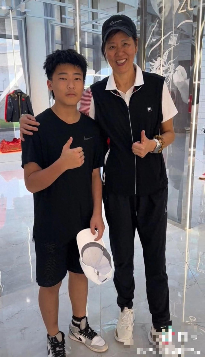 如今15岁的郭麒,身高还是快赶上父亲郭斌了,长得魁岸帅气,2023年郎平去王楠家作客时,见到了这个小伙子。