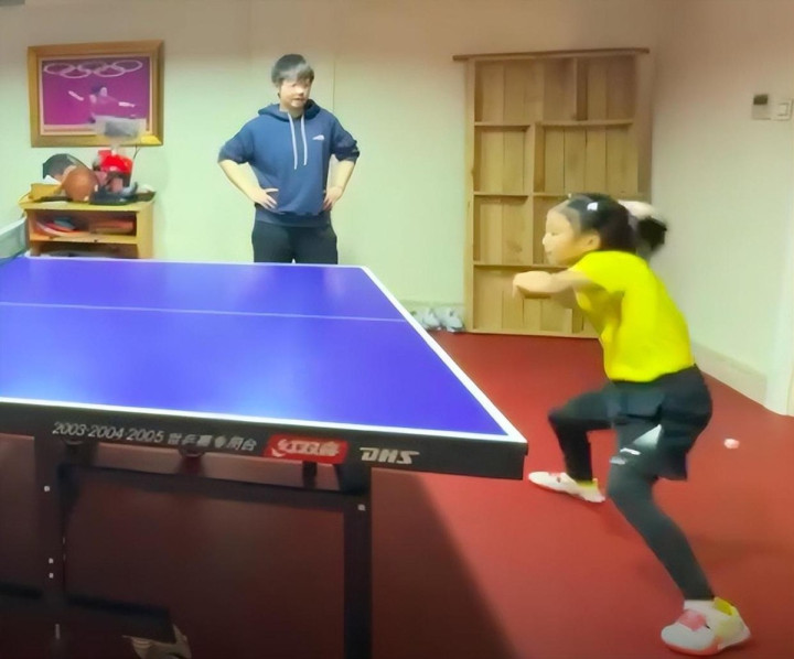 4岁半那年,当同龄的小密斯还在玩洋囝囝、看动画片的时辰,笑笑就还是提起了乒乓球拍,而她的发蒙教训,便是亲妈王楠。