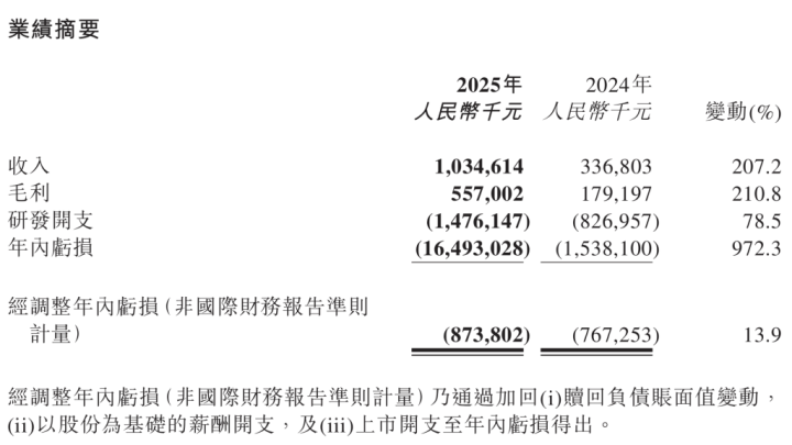 “国产GPU四小龙”壁仞科技(06082.HK)2025年收入增长207%。