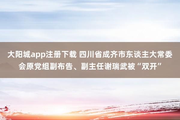 大阳城app注册下载 四川省成齐市东谈主大常委会原党组副布告、副主任谢瑞武被“双开”