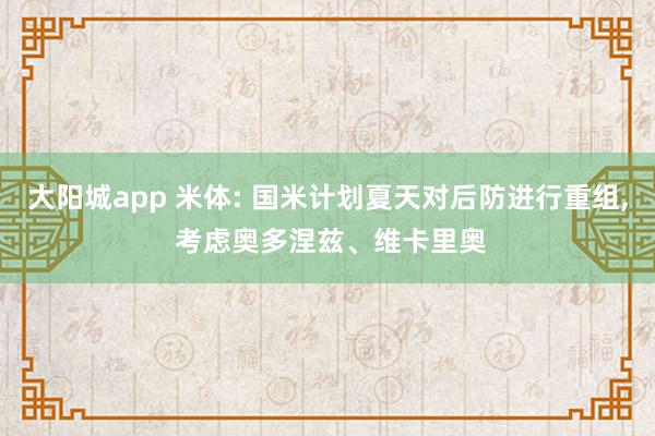 大阳城app 米体: 国米计划夏天对后防进行重组, 考虑奥多涅兹、维卡里奥