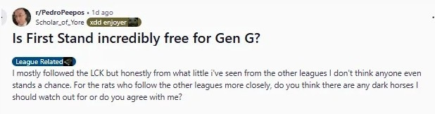你们越是以为这个冠军对Gen.G来说是“白送”的,他们越有可能拿不到。
