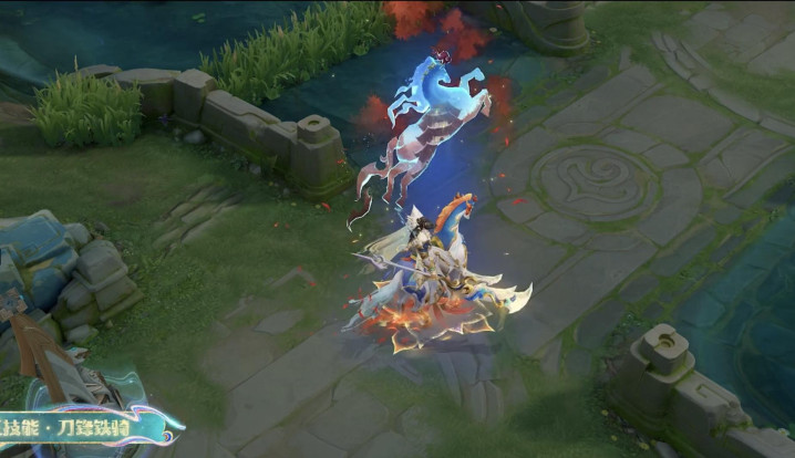 关羽使用强化普攻后,会有两匹蓝色的战马沿途报复敌东谈主,还会出现款色的刀光殊效。