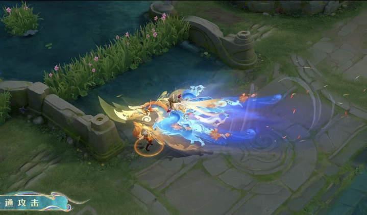 关羽的平凡二手段殊效:关羽使用平凡二手段后,会有花灯和神环殊效,眼下还有波浪殊效。